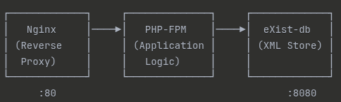 The result? A document management system using eXist-db (a native XML database), PHP, Nginx, and Docker Compose - all exposed securely via Cloudflare Tunnel.